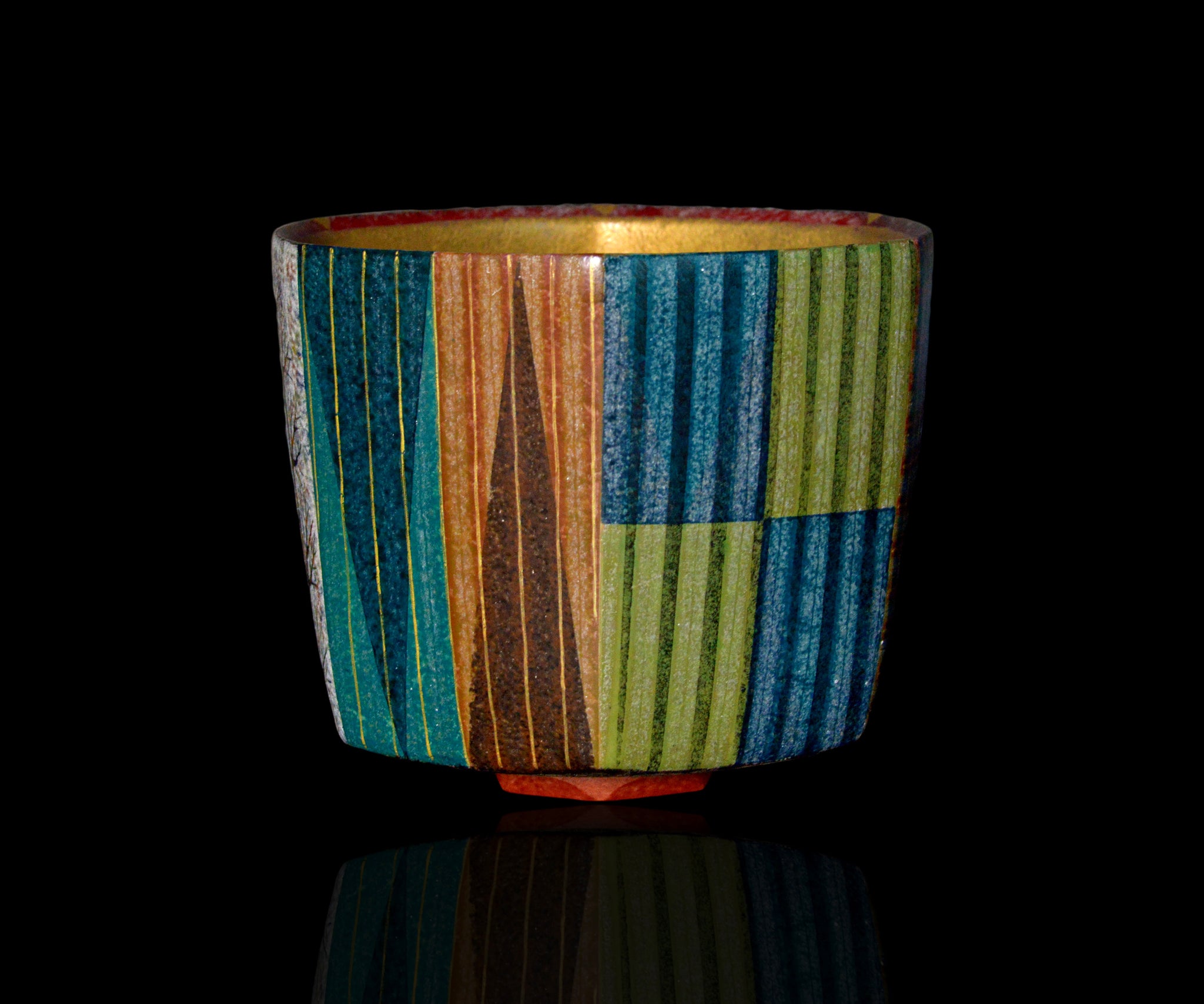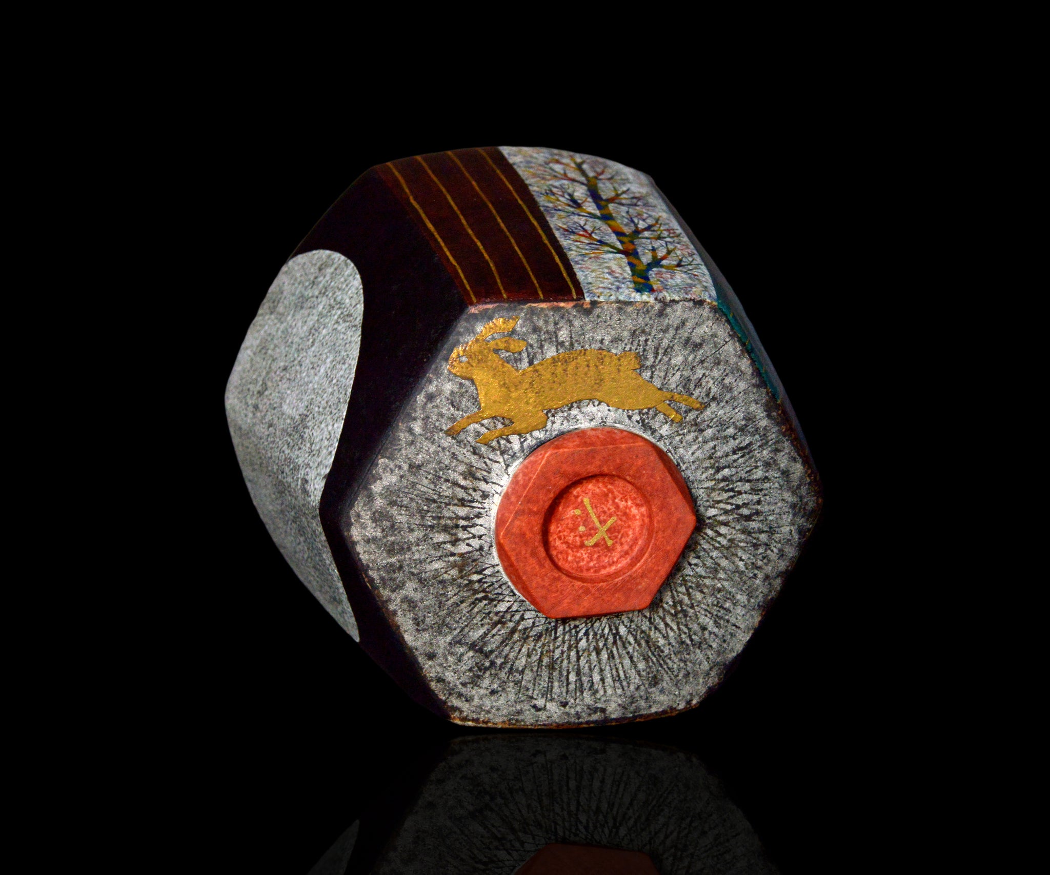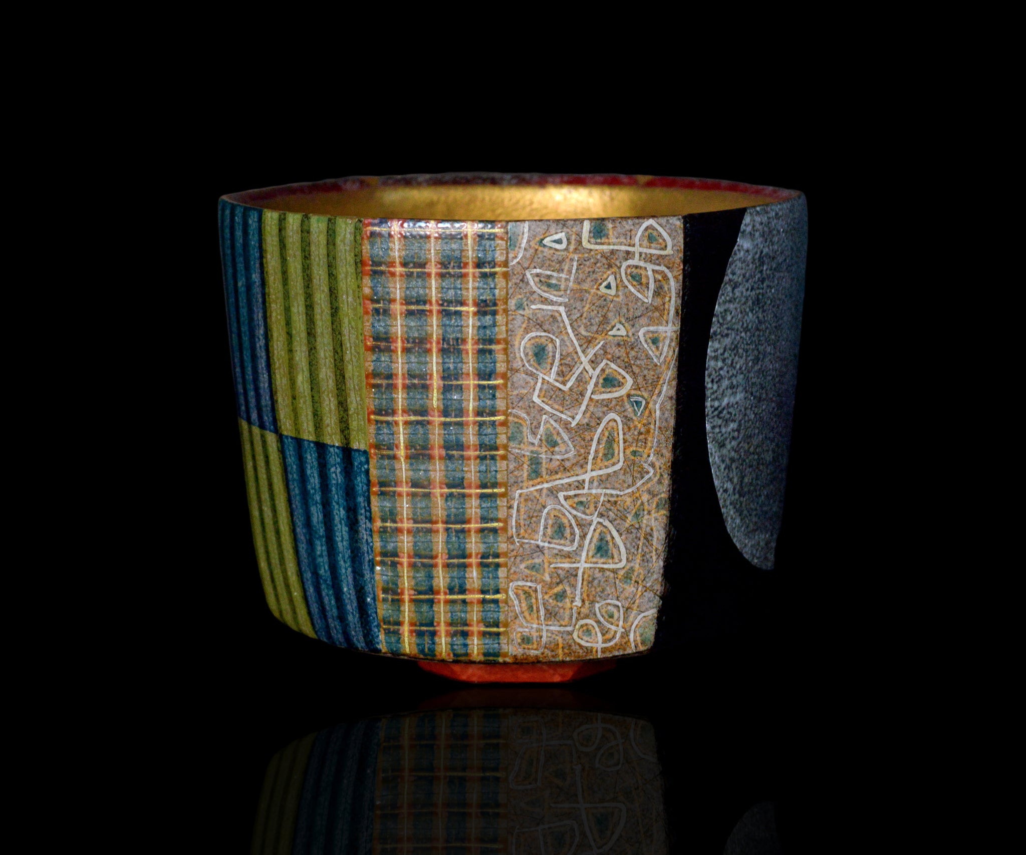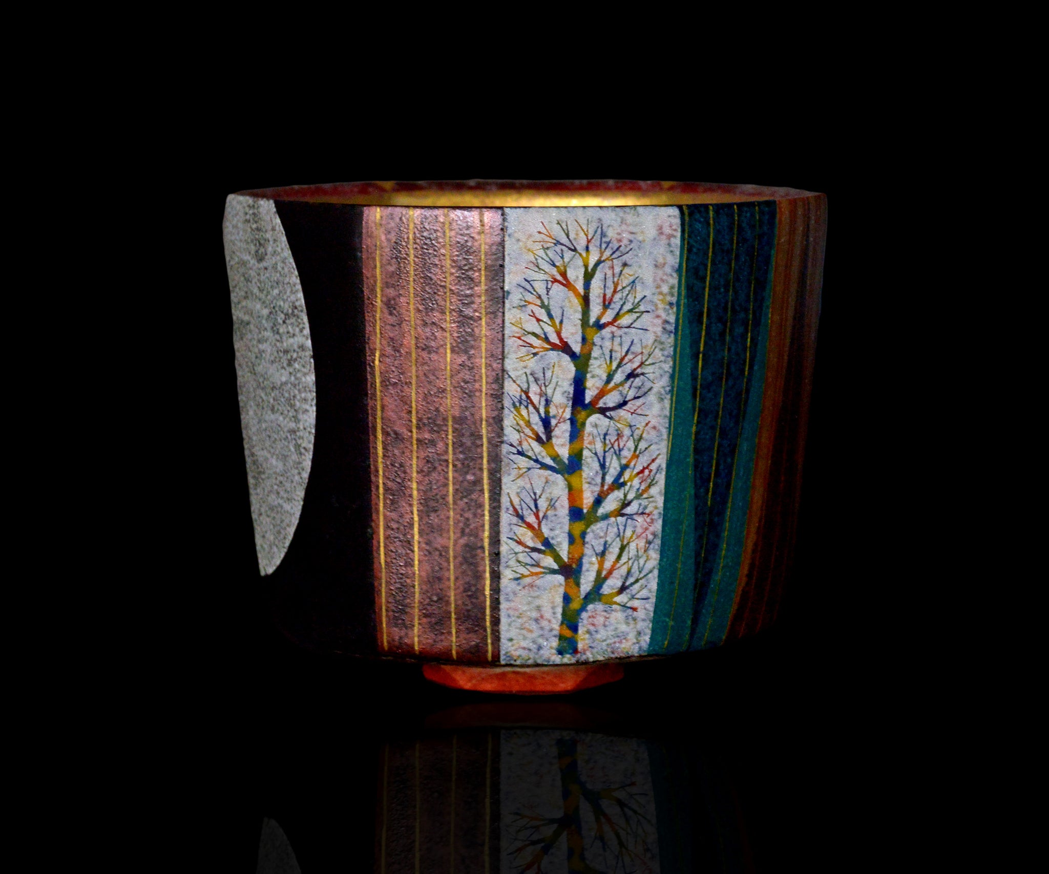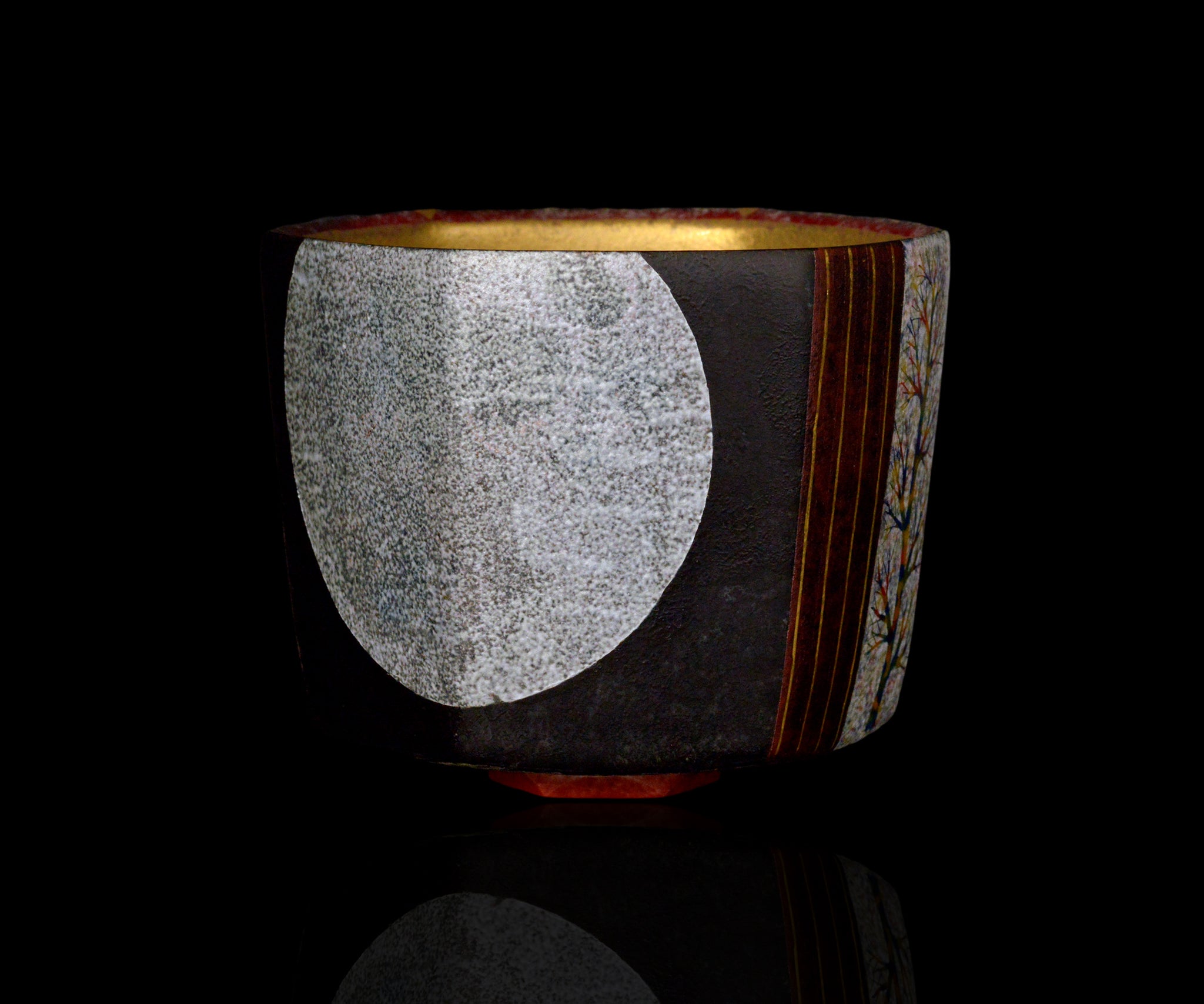 伊藤北斗 釉刻色絵金銀彩 面取茶盌 -Moon-