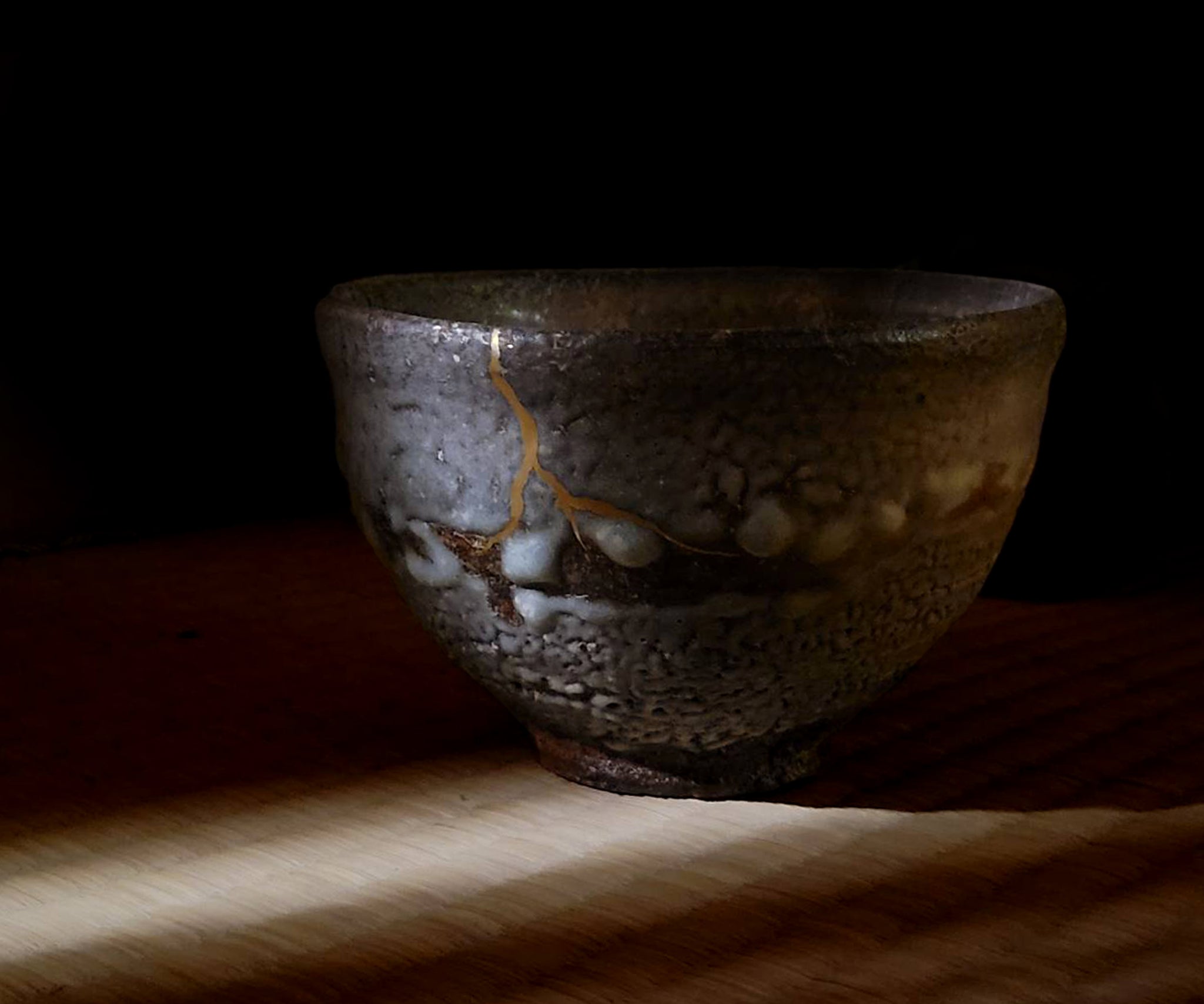 岡本作礼 唐津梅花皮茶盌 銘「雷神」