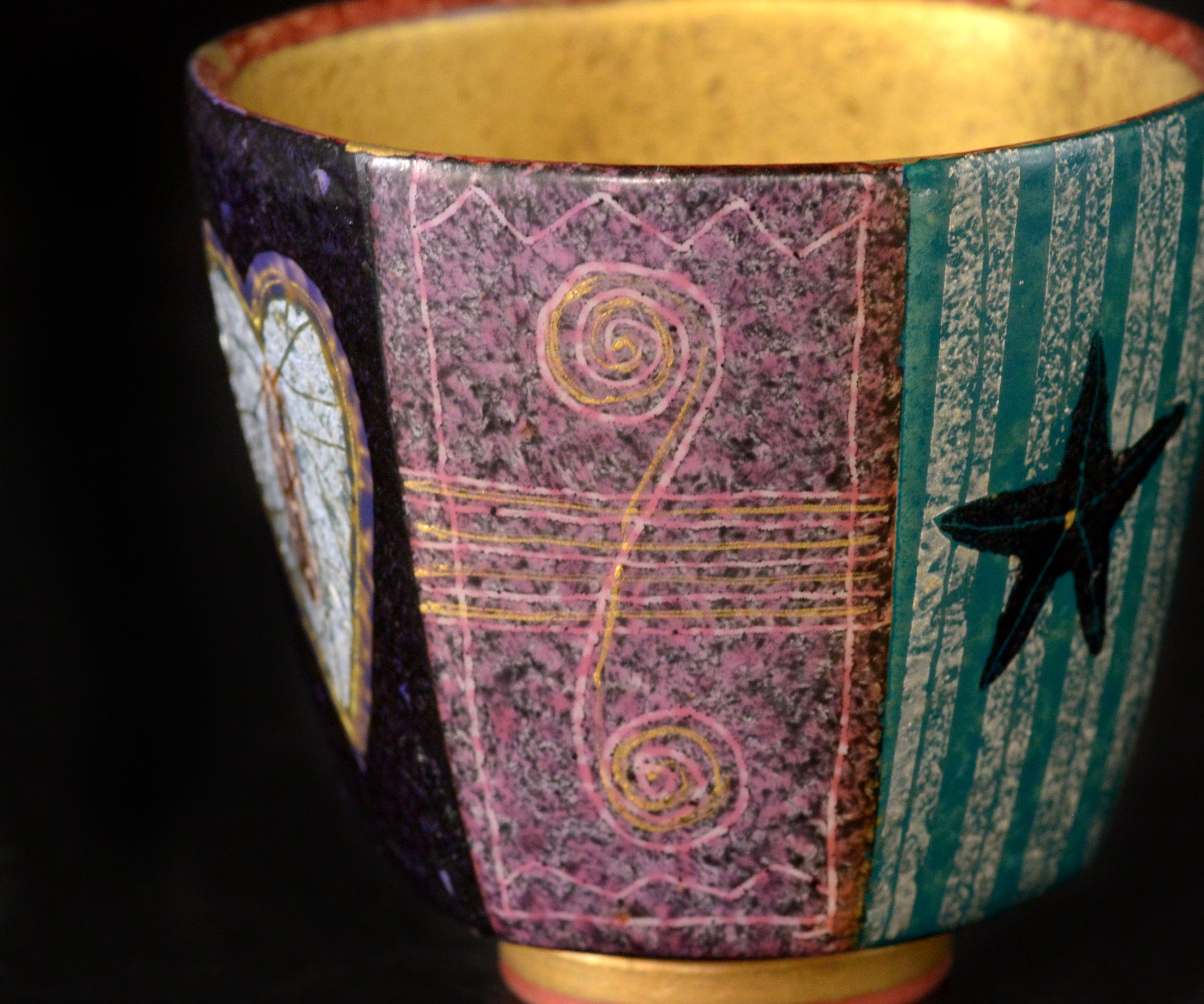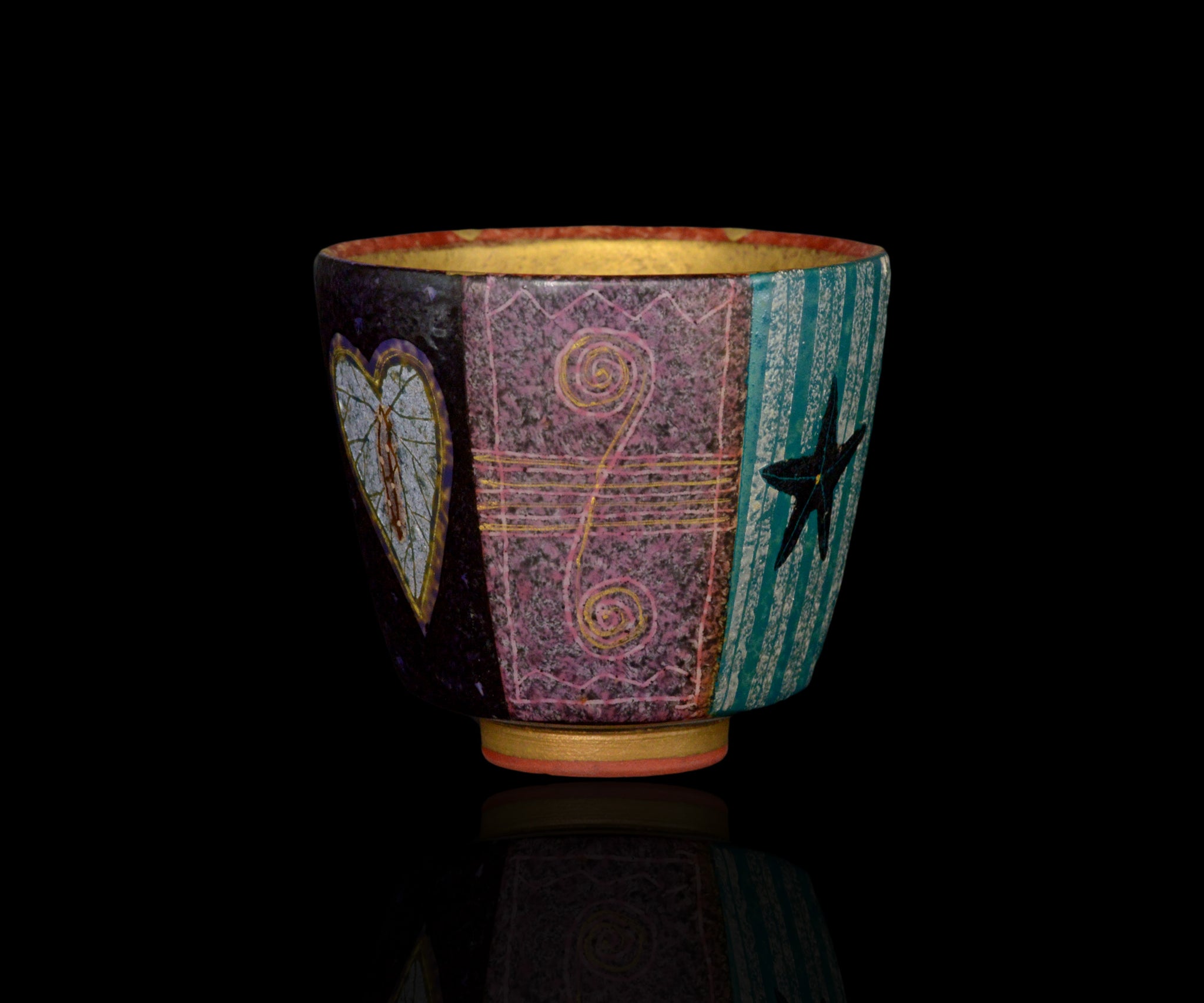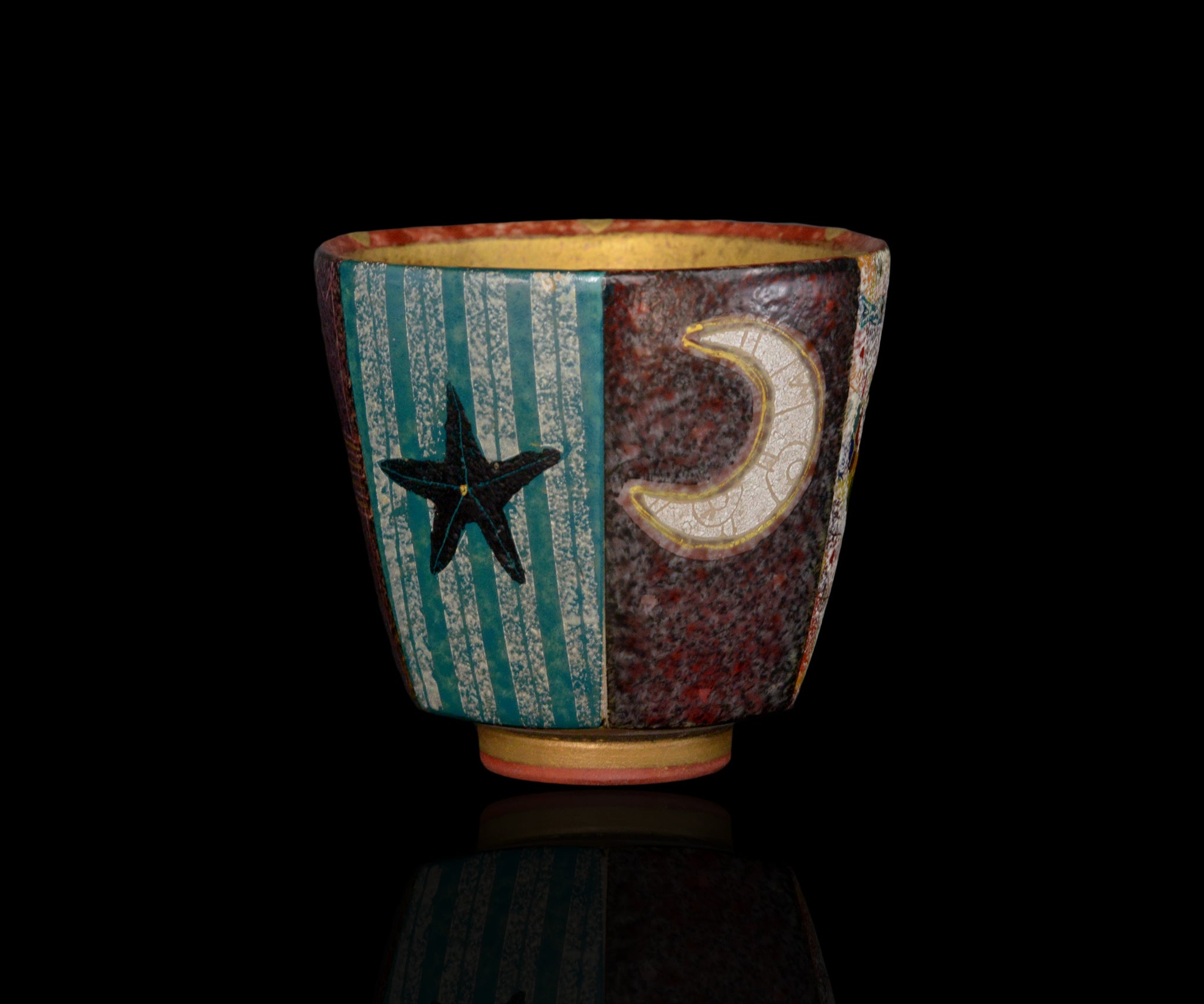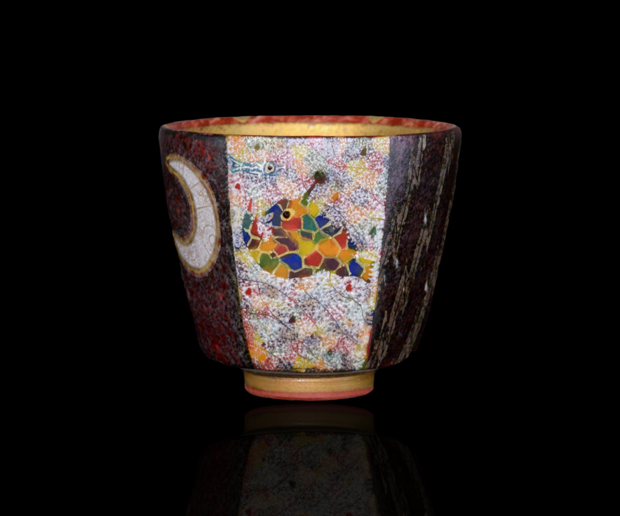 伊藤北斗 釉刻色絵金銀彩 面取ぐい呑 -Anglerfish-