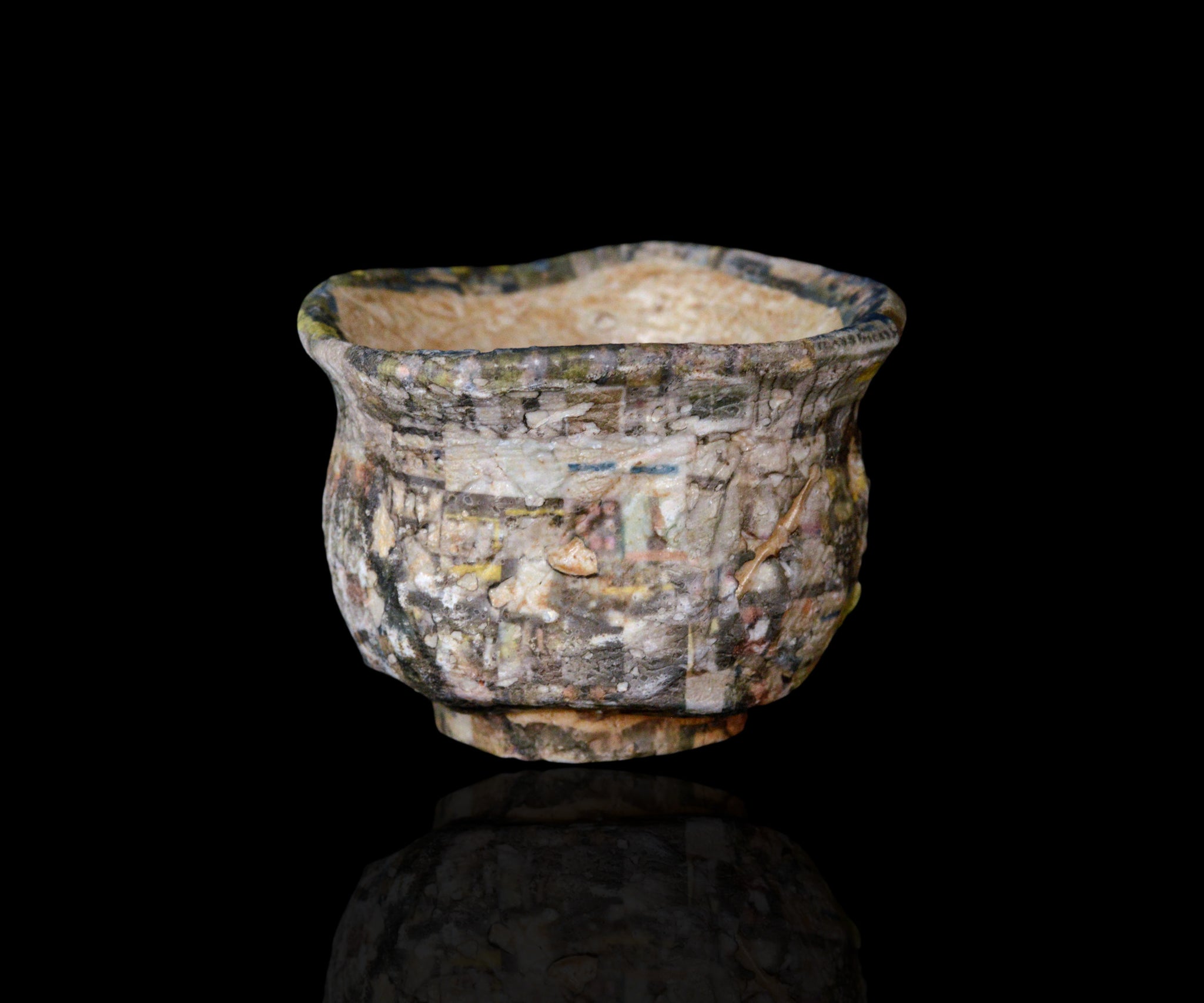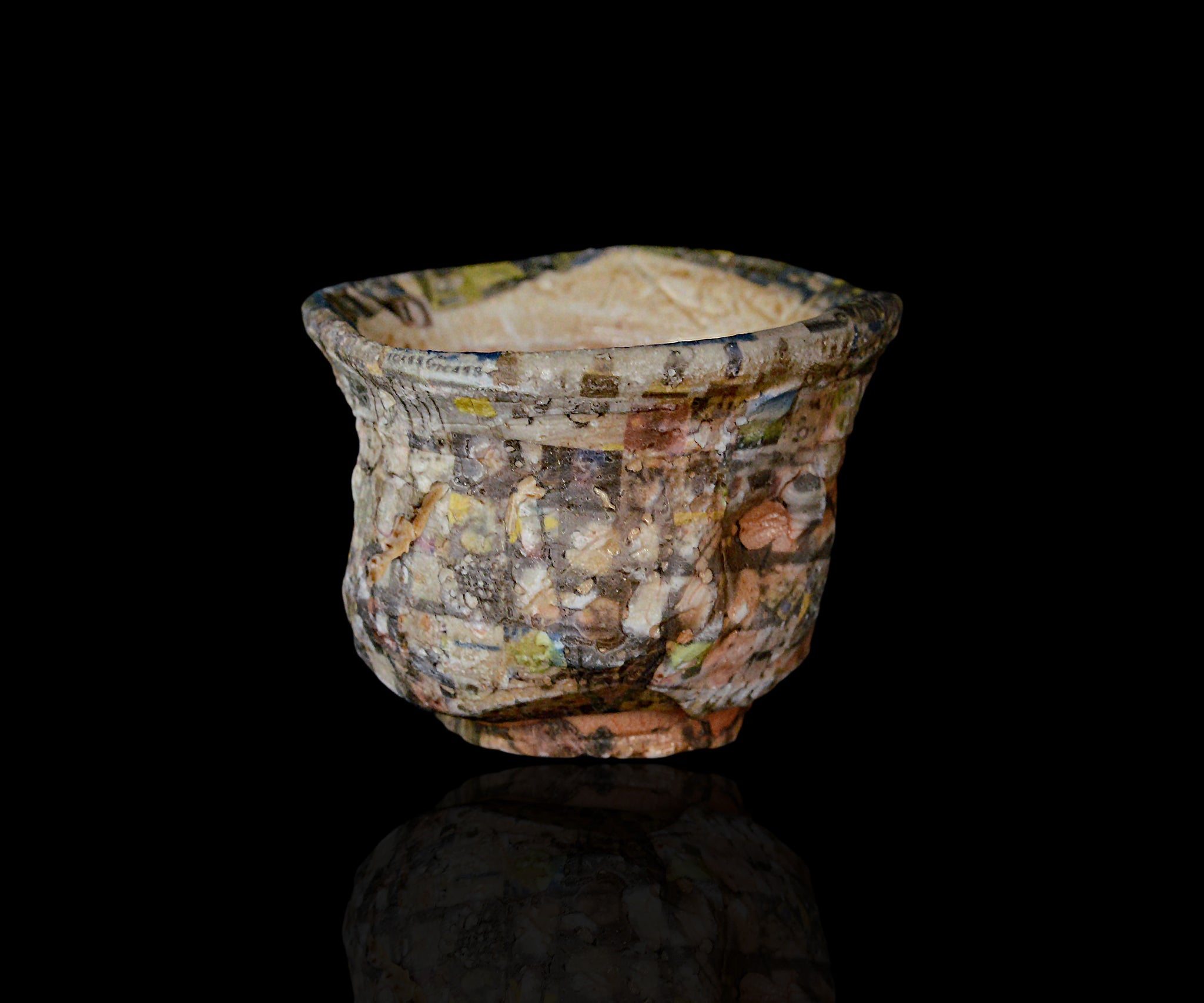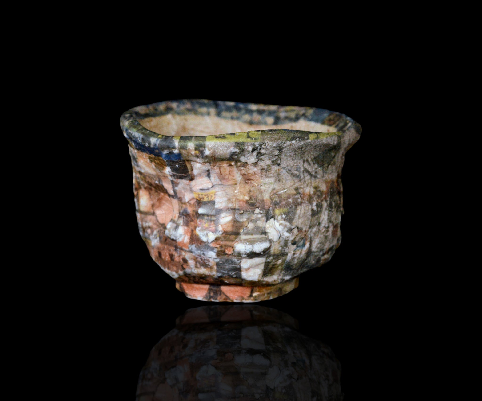 転写やAIを用い独自の作風を生み出している伊勢崎陽太郎さんの最新作、日々薪窯ぐい呑。スマートフォンのギャラリーに収められた一年分の写真をスクリーンショットし、それを転写プリントとして用いた、きわめて現代的なアプローチのぐい呑。2024年に伊藤慶二さんの薪窯で焼成された特別な作品です。