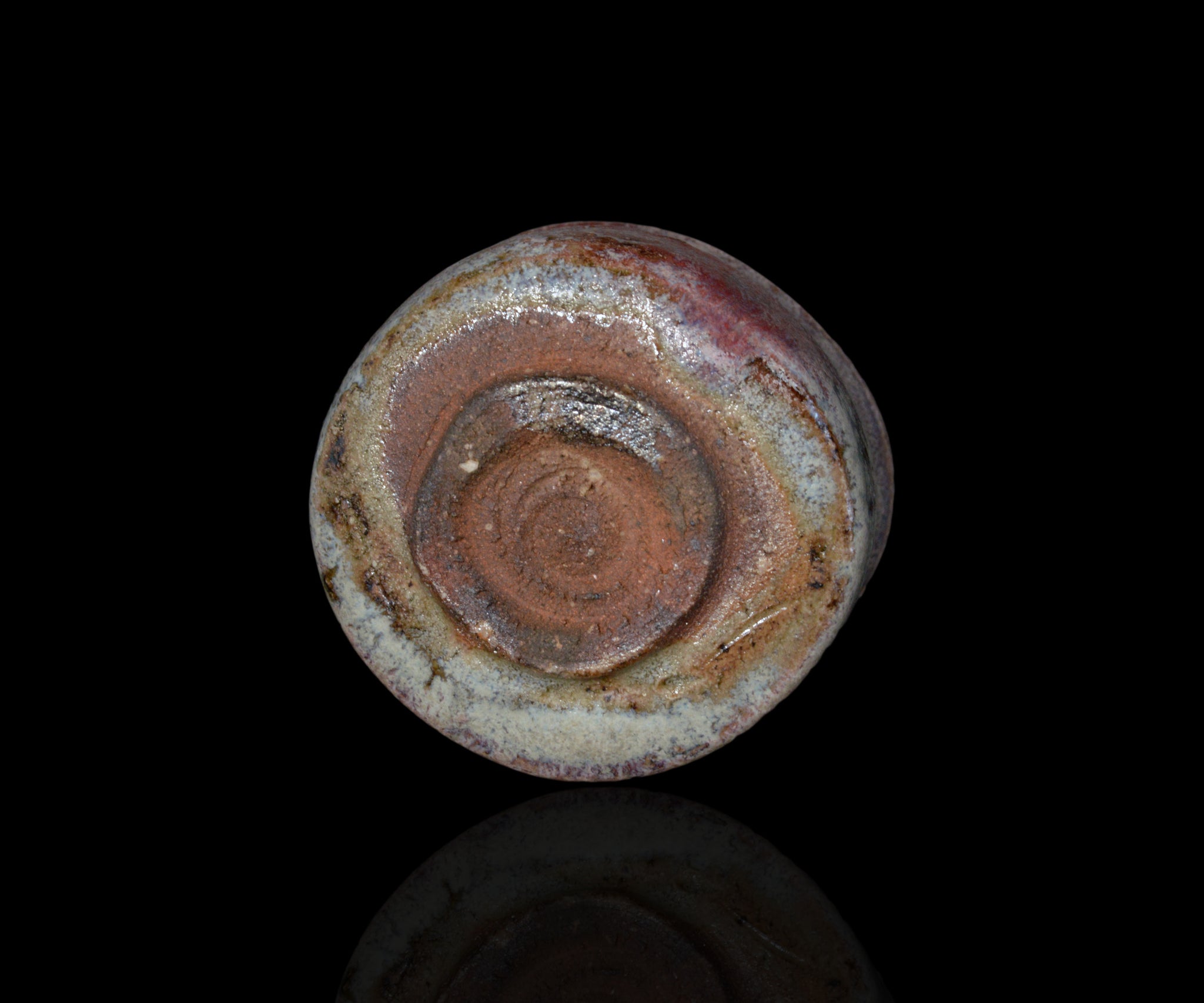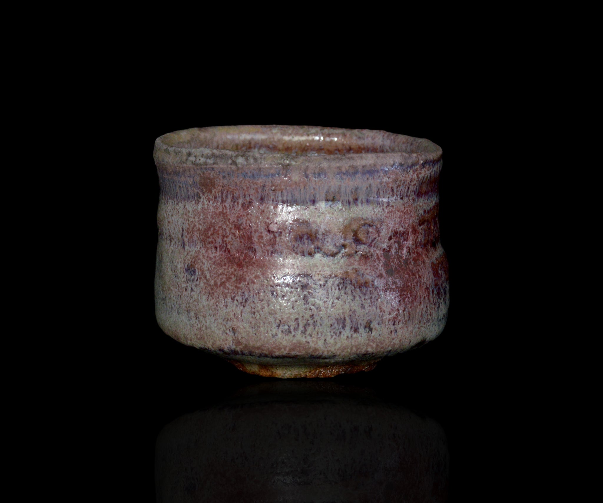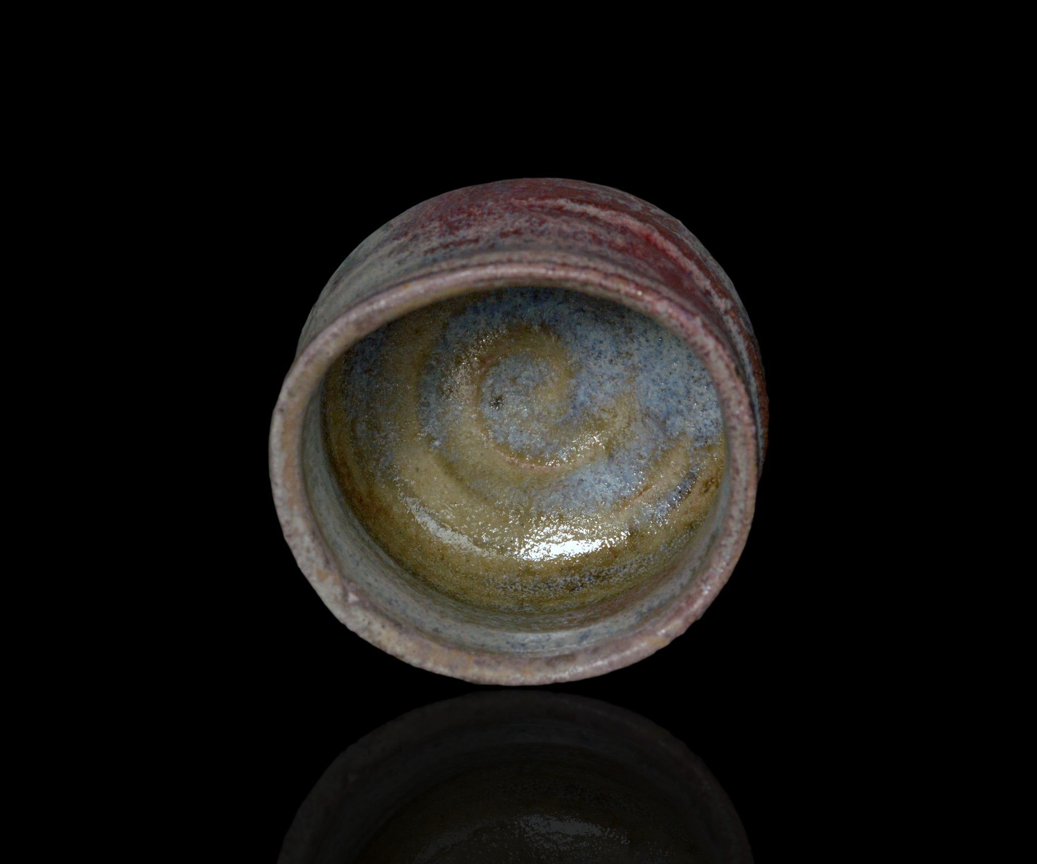 埼玉で黄瀬戸作品を中心に作陶する松村遷さんの黄瀬戸ぐい呑。ガス窯にて黄瀬戸を制作後、さらなる窯変を求め薪窯で焼成し奥行きのある表情を引き出した作品。大ぶりのボディにしっかりと現れた辰砂と卯の斑、そして朝鮮唐津のような釉薬の流れがパワフルな景色を作っています。黄瀬戸の新たな可能性を感じさせる作品です。