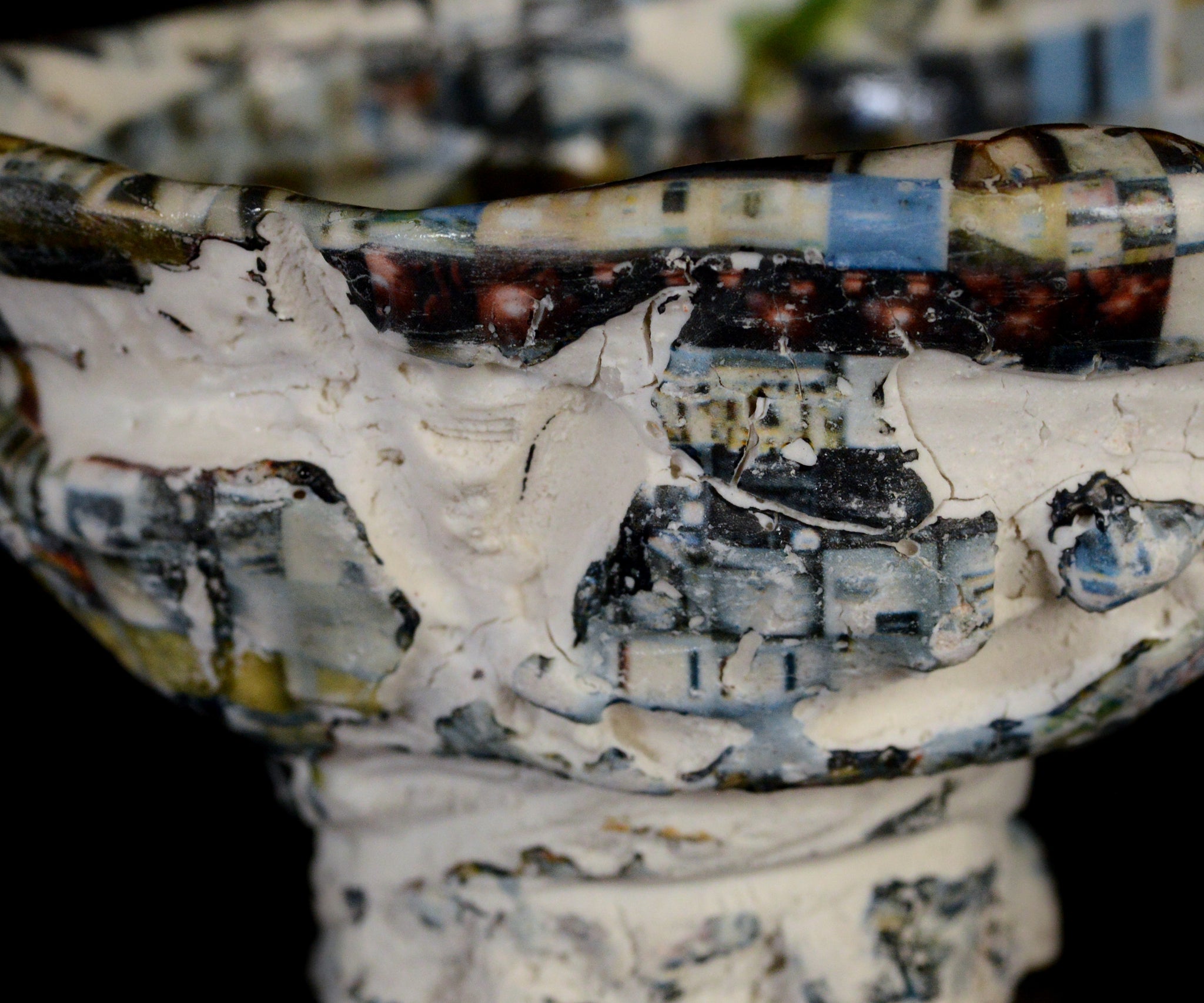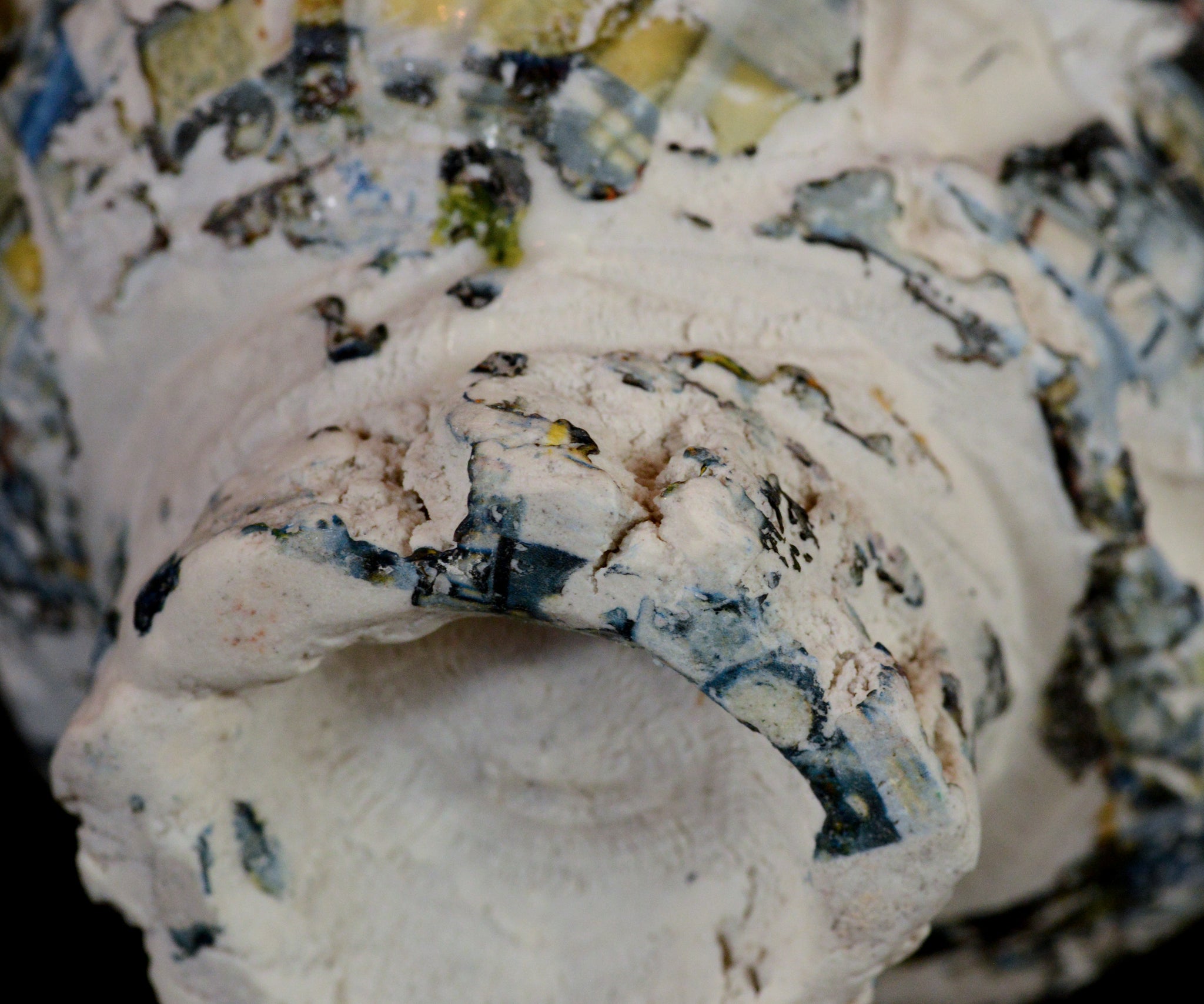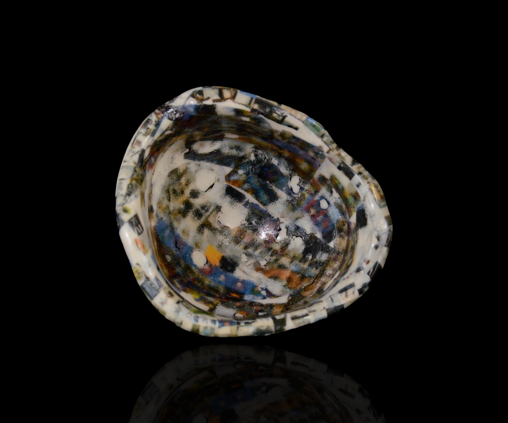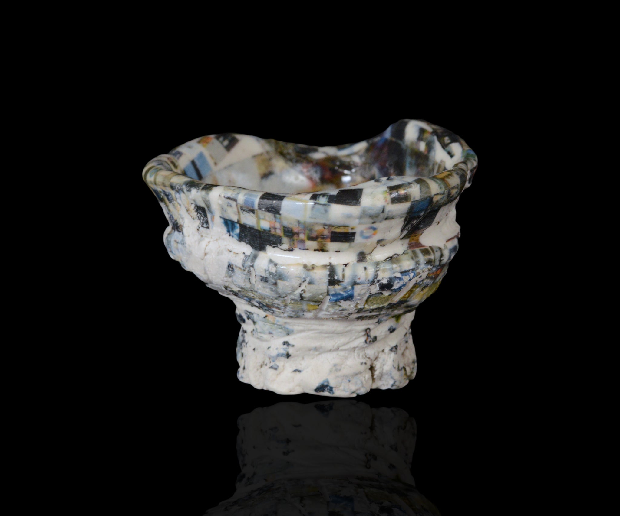 転写やAIを用い独自の作風を生み出している伊勢崎陽太郎さんの最新作、日々箆目ぐい呑。スマートフォンのギャラリーに収められた一年分の写真をスクリーンショットし、それを転写プリントとして用いた、きわめて現代的なアプローチの作品。大ぶりでパワフルな造形と彫り、そして転写のコントラストが楽しめる酒杯です。